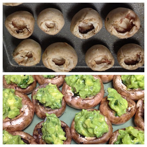 | @lachilindrinatx5 -- portabello mushrooms stuffed with guacamole. |